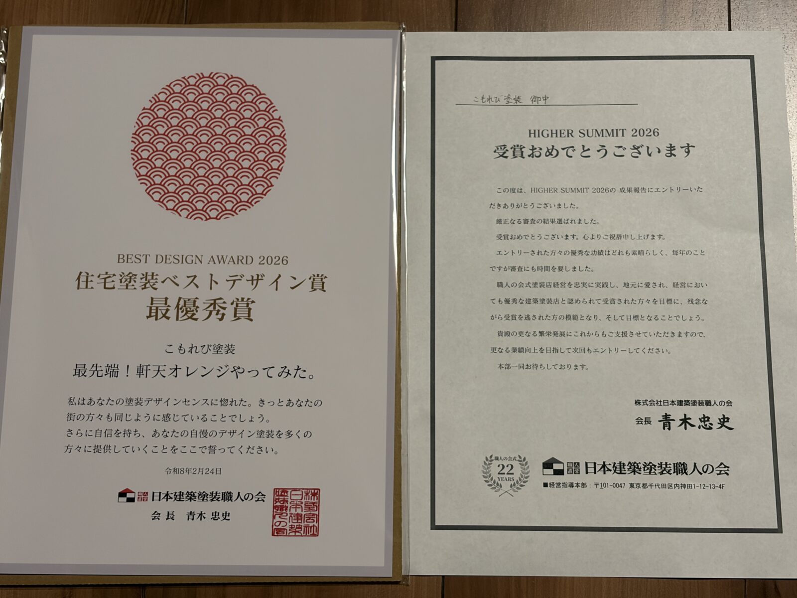 BEST DESIGN AWARD2026住宅塗装ベストデザイン賞 最優秀賞をいただきました!