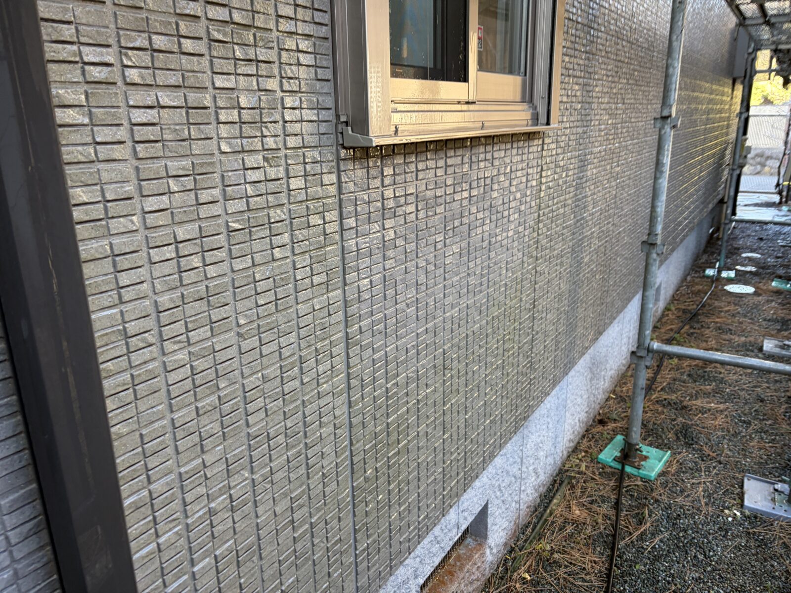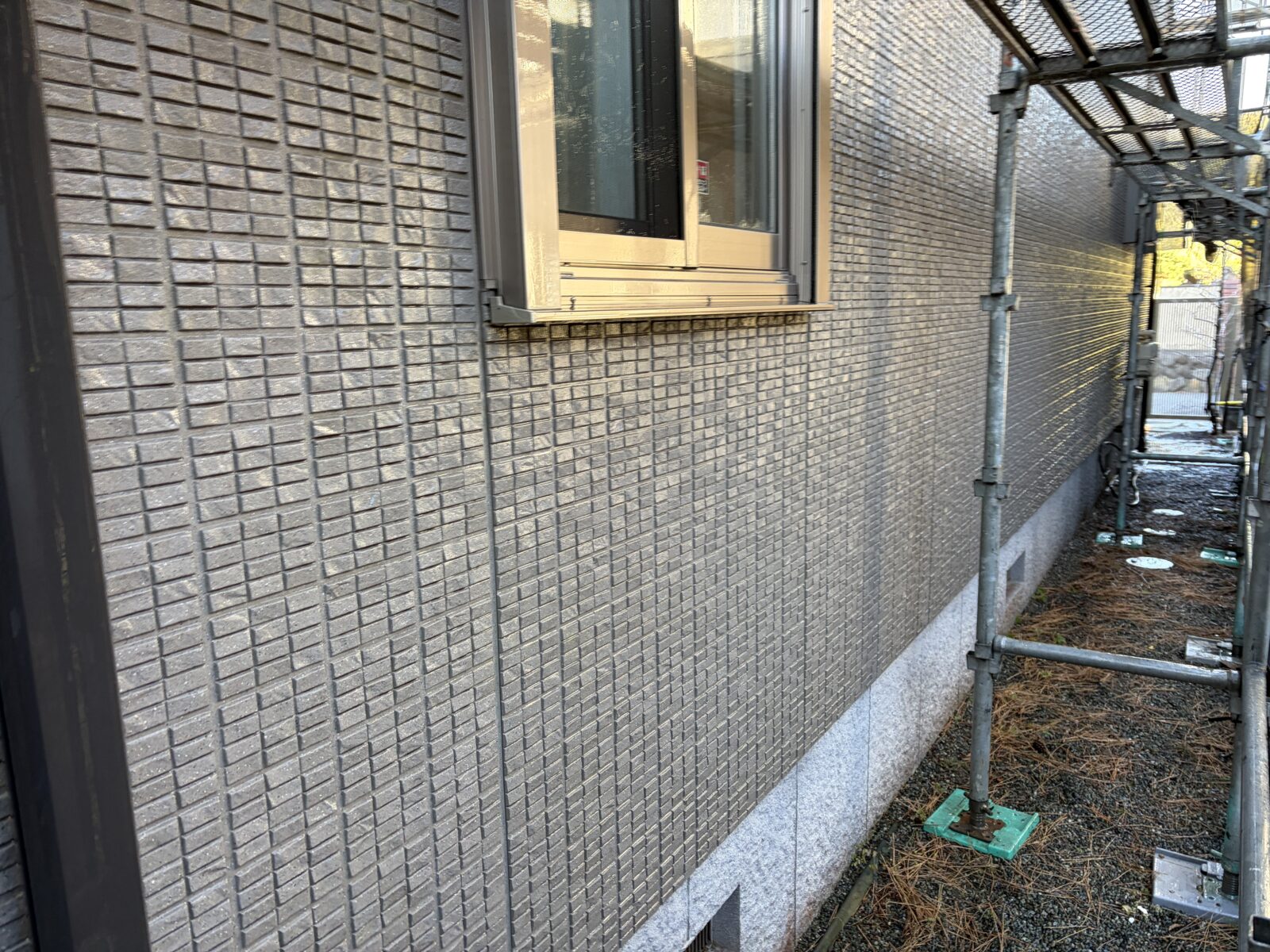 洗浄後は、外壁本来の色味がはっきり、触るとザラつきがなく、塗料がしっかり密着する状態になりました。
