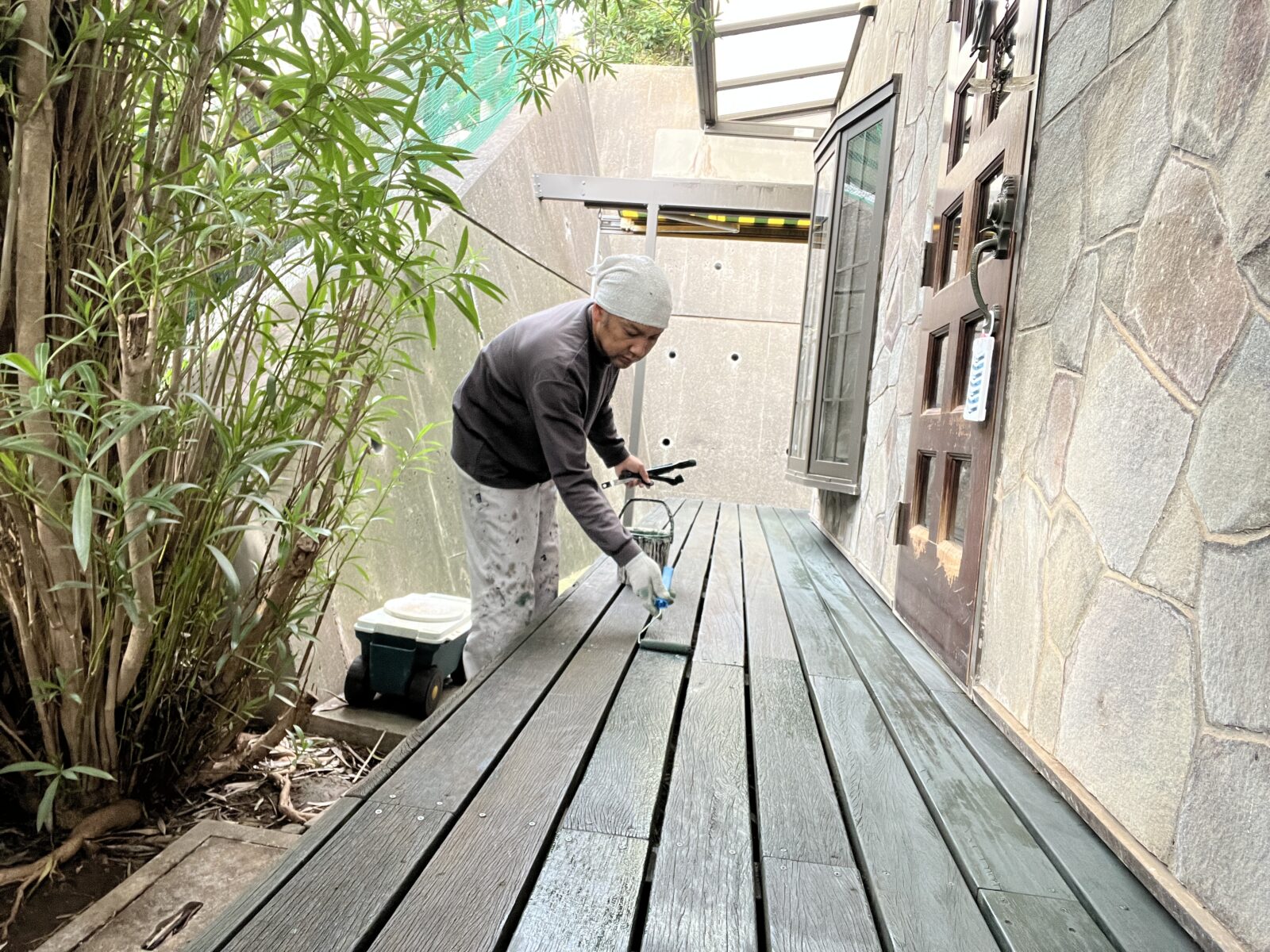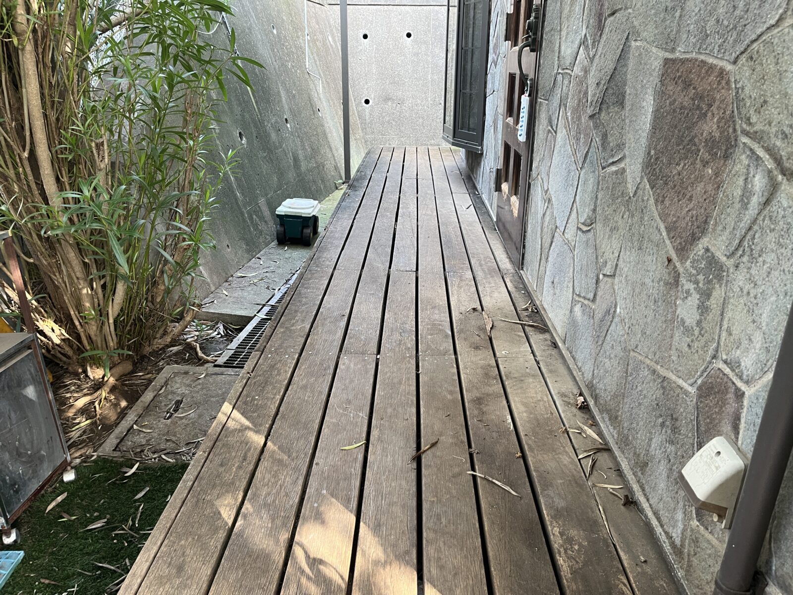 仕上がった後のデッキを見ると、木目がしっかり蘇り、色も落ち着いて、最初の状態とは全くの別物のように引き締まりました。