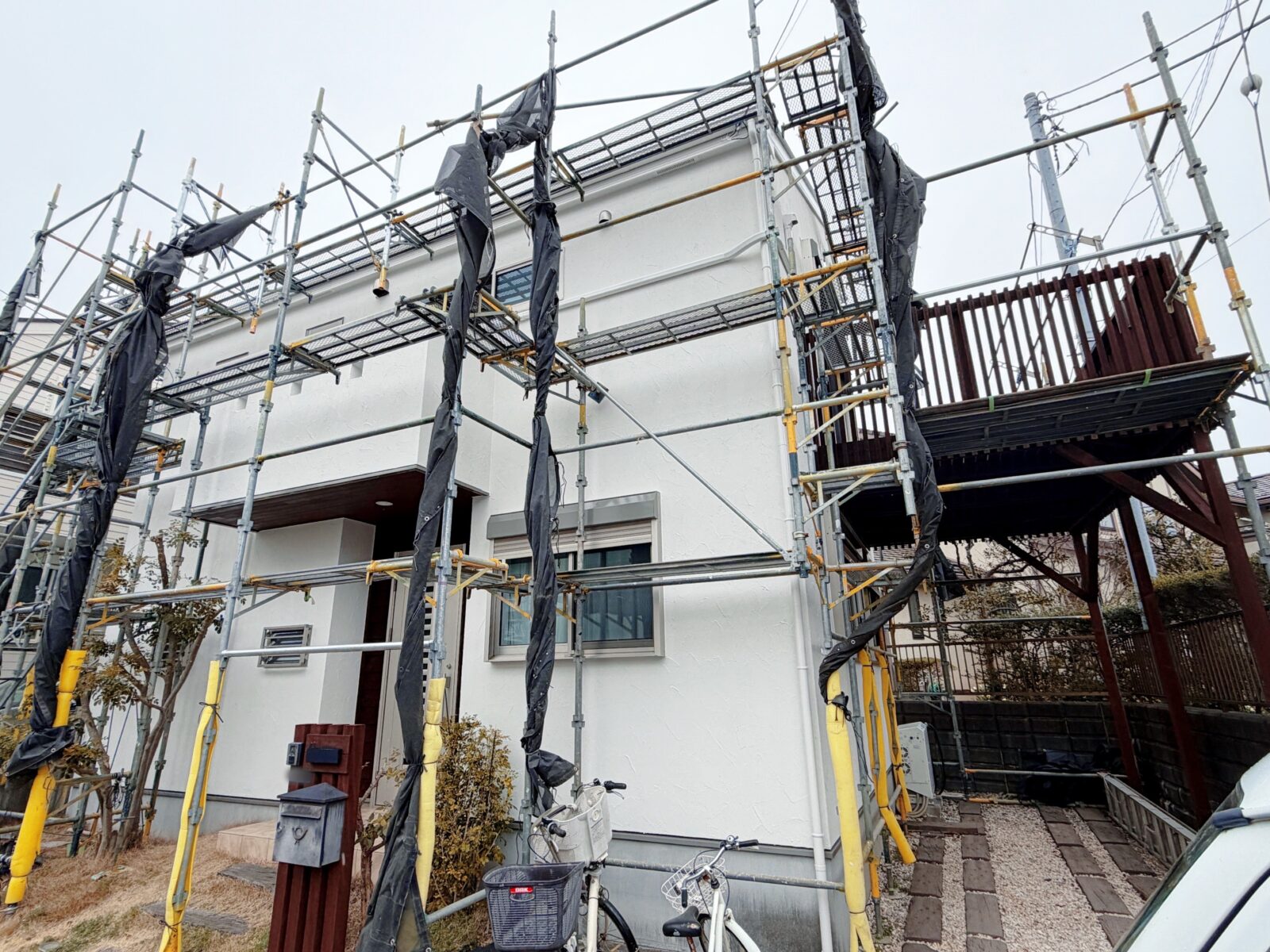 足場解体まで少し時間があるため、本日はメッシュシートを外すだけでも、お家まわりの印象はかなり変わります。